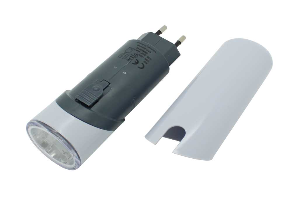 Akku-Taschenlampe zum Laden in der Steckdose