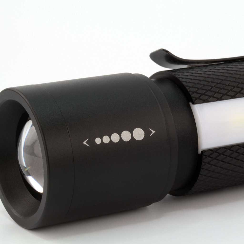 Durch ihre griffige Oberfläche und ihren großen Endkappenschalter ist die FUTURE Multi 3in1 ideal geeignet für den Einhandbetrieb, auch mit Handschuhen. Der fest verbaute Haltemagnet im Schalterteil ermöglicht das Befestigen an allen metallischen Gegenständen. Das stufenlose Fokussieren von präzisem Punktlicht bis zu homogenem Flutlicht durch Verschieben des Lampenkopfes komplettiert die einfache Handhabung dieser Multifunktionsleuchte.