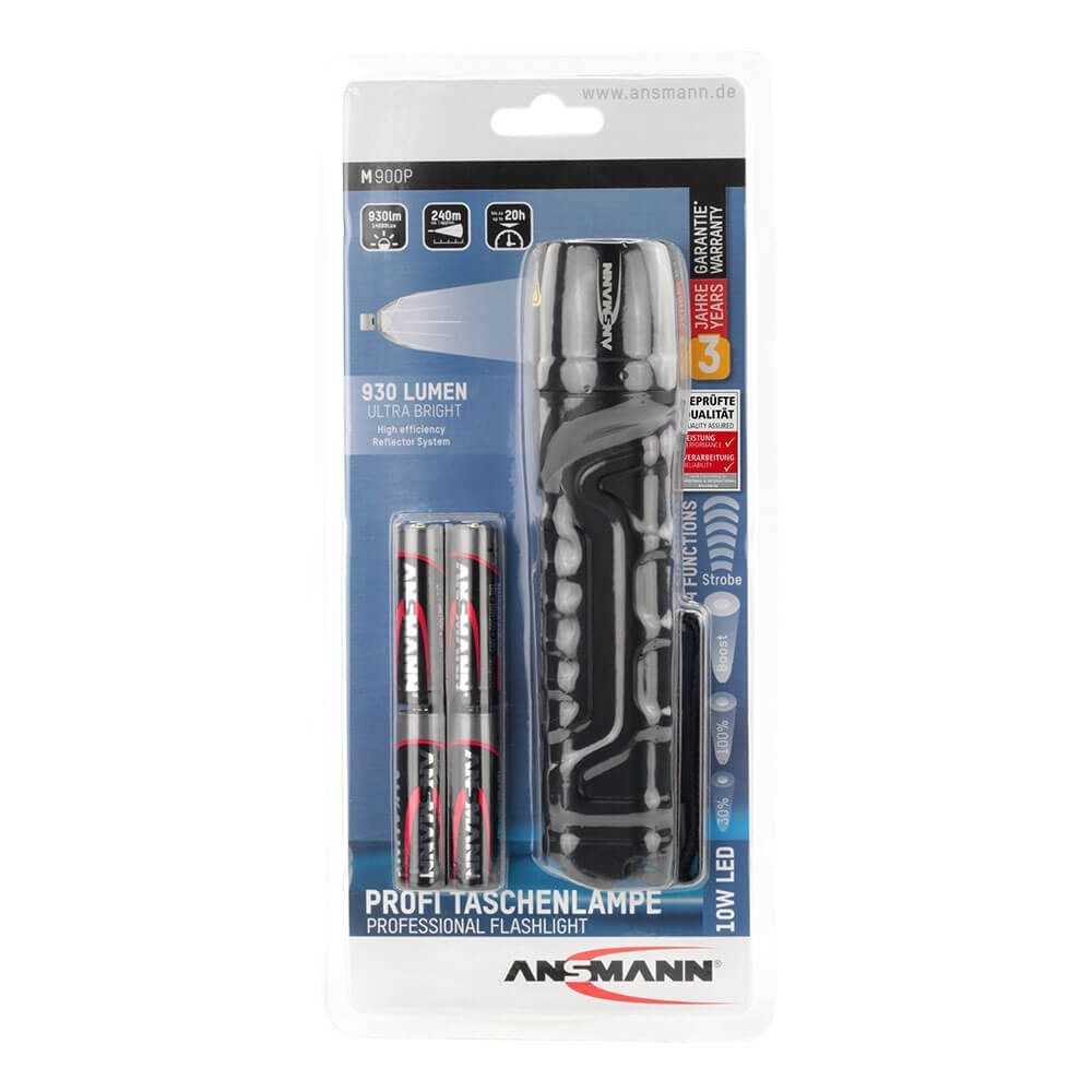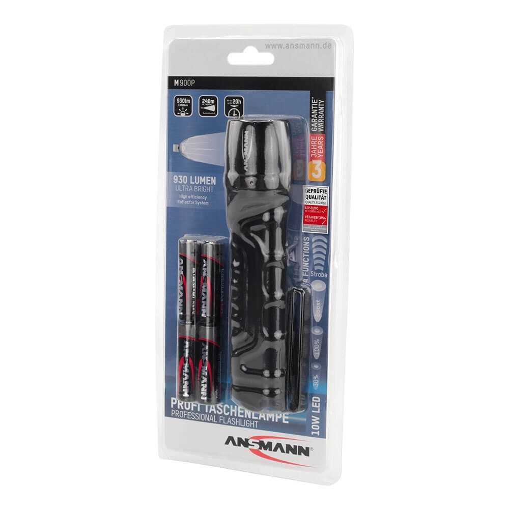 Die professionelle 10W LED-Taschenlampe M900P von ANSMANN besticht durch ihre optimalen Gehäuseproportionen und griffige Oberfläche. Das Lampengehäuse ist aus robustem ABS-Kunststoff. Es hat den Vorteil, dass sich das Material bei kalter Witterung nicht so sehr abkühlt. Speziell die Ergonomie und der Tragekomfort wird dadurch optimiert. Langes halten, auch bei kalten Temperaturen ist kein Problem.