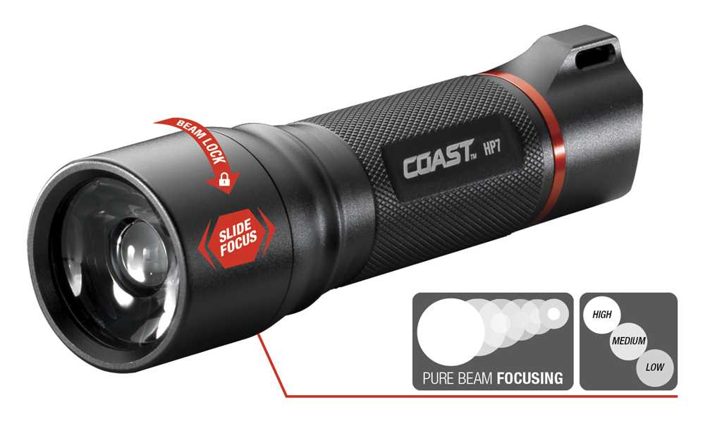 Die Coast HP7 ist eine sehr handliche und zuverlässige LED Taschenlampe, welche durch hohe Lichtleistung überzeugt. Eine robuste Konstruktion und ein stoßfestes, leichtes Aluminiumgehäuse hält Rost und Korrosion stand. Mit dem rückseitigen, ergonomisch eingelassenen "Quick-Cycle Switch" kann schnell und einfach zwischen 3 verschiedenen Helligkeitsstufen mit bis zu 410 Lumen* Lichtstärke und bis zu 229 Metern* Leuchtweite gewechselt werden. Das "Pure Beam" Fokussieroptik-System ist mit "Slide Focus Control" und "Beam Lock" ausgestattet. Die Umstellung vom großen Leuchtkreis zum „Bulls-Eye Spot Beam“ kann so durch Drehen am Lampenkopf in jeder eingestellten Position fixiert werden. Das robuste und leichte Aluminiumgehäuse ist stoßfest und wasserabweisend und beständig gegen Rost und Korrosion. Die Konstruktion der Endkappe erlaubt ein aufrechtes Aufstellen der Lampe und beinhaltet einen Wegrollschutz. Das optional erhältliche Farbfilter-Set, erweitert den Einsatzbereich in Hobby & Beruf.