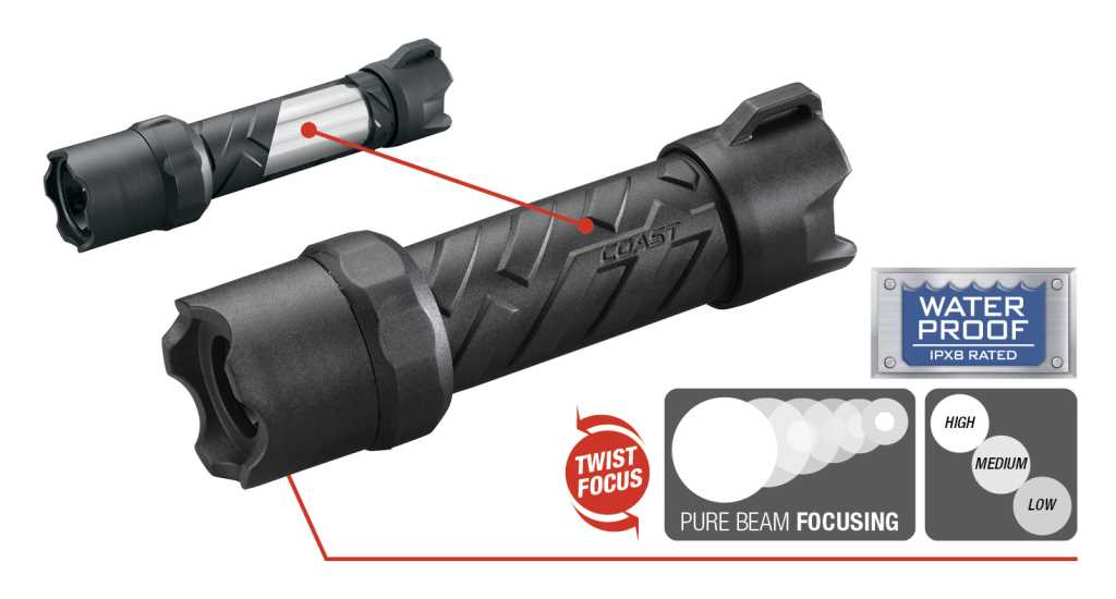 Die COAST POLYSTEEL 200 kombiniert die patentierte Hochleistungs-Taschenlampentechnologie mit einem neuen Stand der Produktionstechnik. Die LED Lichttechnik befindet sich im inneren eines Edelstahlkerns welcher vollständig in einen „Kunststoffmantel“ gewickelt ist. Die Robustheit macht die PS400 zur Lampe für’s Grobe. Stoß- und Falltests nach IPx8 Standards absolvierte sie vorbildlich, ebenso den Test auf Wasserdichtigkeit. Durch die kompakte Größe und das geringe Gewicht kann die PS200 in fast jeder Hosentasche transportiert werden und ist somit jederzeit griffbereit. Durch die 3 Leuchtmodi und dem „Pure-Beam-Focus“ ist diese Lampe für fast jeden Anwendungsbereich geeignet.