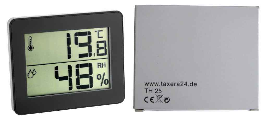 BeschreibungMerkmaleSicherheitsbestimmungenBewertungenDownloads Beschreibung • ultra-flaches Design • Komfortzone • Höchst- und Tiefstwerte • mit hochglänzender Oberfläche • schwarz • Messbereich: • T in: 0...+50°C (+32...+122°F) • H in: 20...95% • zum Hängen oder Stellen • 100 x 12 (48) x 82 mm • 70 g • 1x CR2025 Merkmale Abmessungen 100 x 12 (48) x 82 mm (inkl. Fuß) Batterien 1 x 3 V CR2025 Gewicht 70 g Messbereich Luftfeuchte innen: 20...95% Messbereich Temperatur innen: 0...+50°C Sicherheitsbestimmungen Hersteller nach GPSR TFA Dostmann GmbH & Co. KG Zum Ottersberg 12 97877 Wertheim | Reicholzheim Germanyinfo@tfa-dostmann.de WEEE-Nummer: DE 78184127 Bewertungen Geben Sie die erste Bewertung ab Es liegen keine Bewertungen vor Downloads Benutzer, die diesen Artikel gekauft haben, haben auch gekauft „Klimatherm“ Thermo-Hygrometer 45.2005 11,89 € *