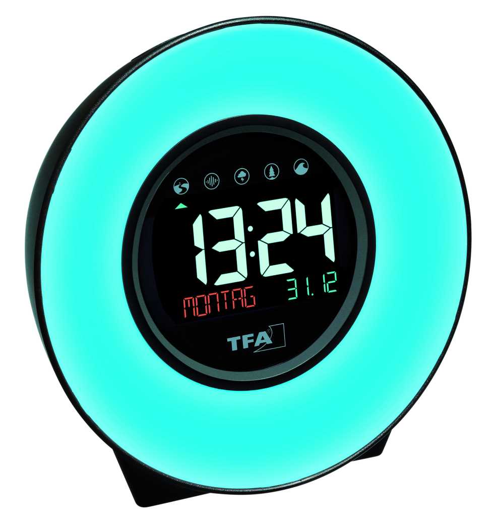 • Sanftes Aufwachen mit schrittweise heller werdendem Licht und/oder Naturgeräuschen